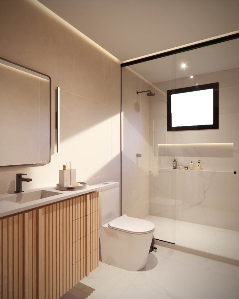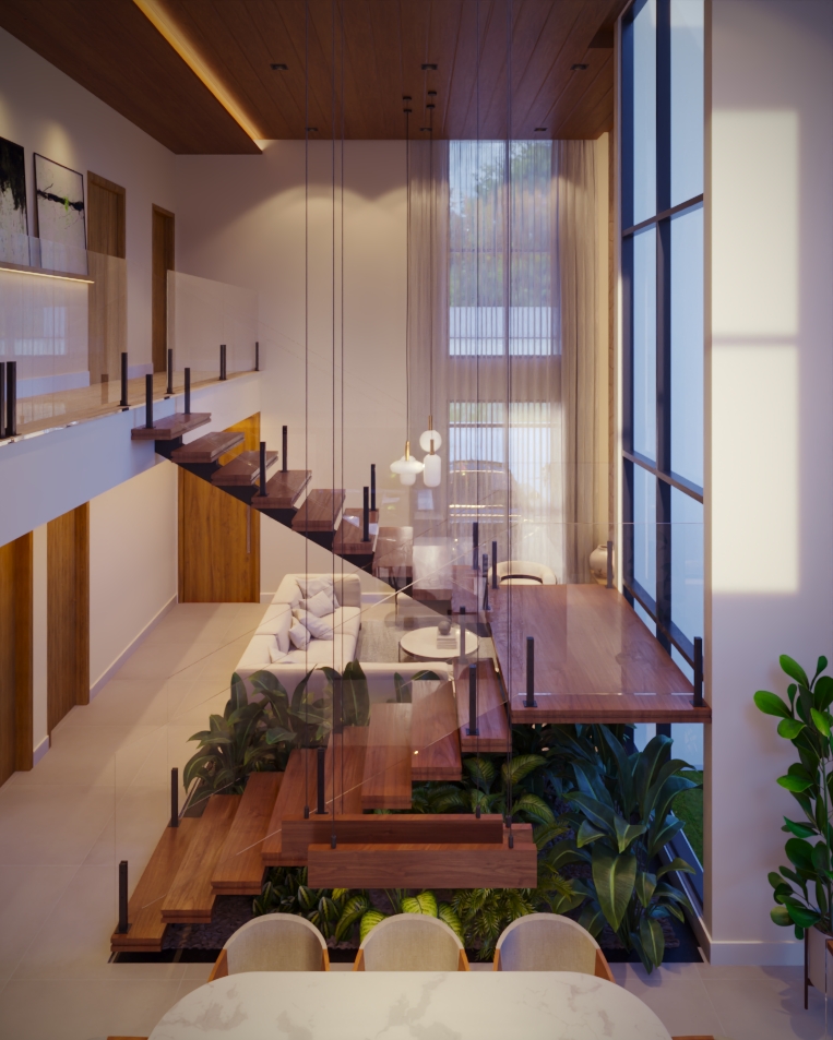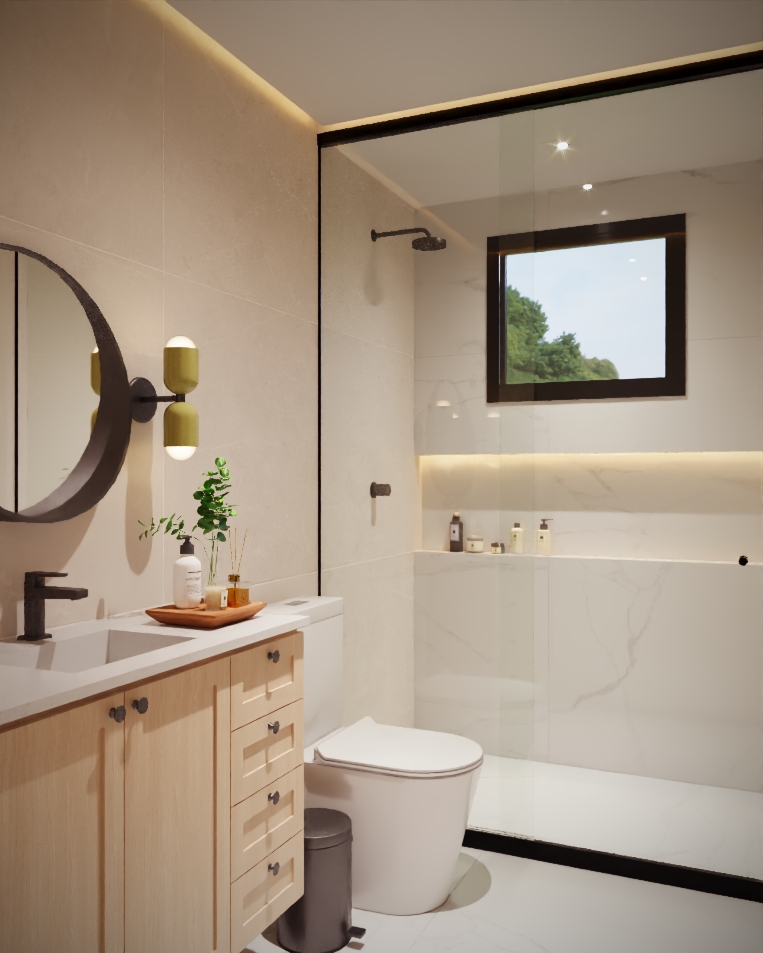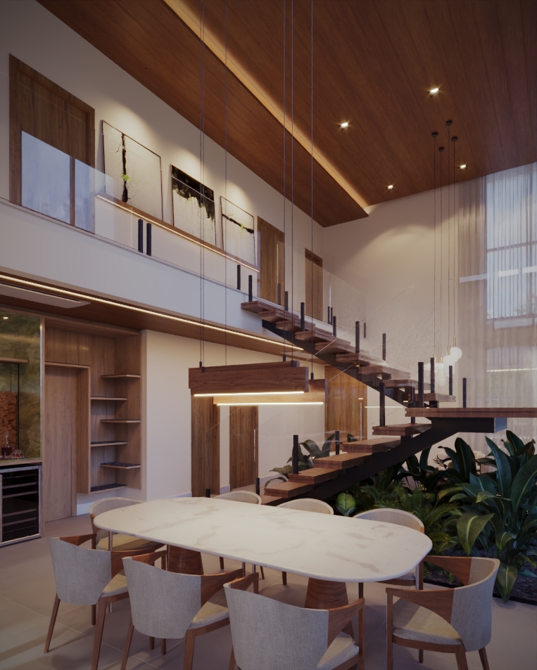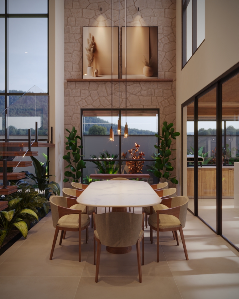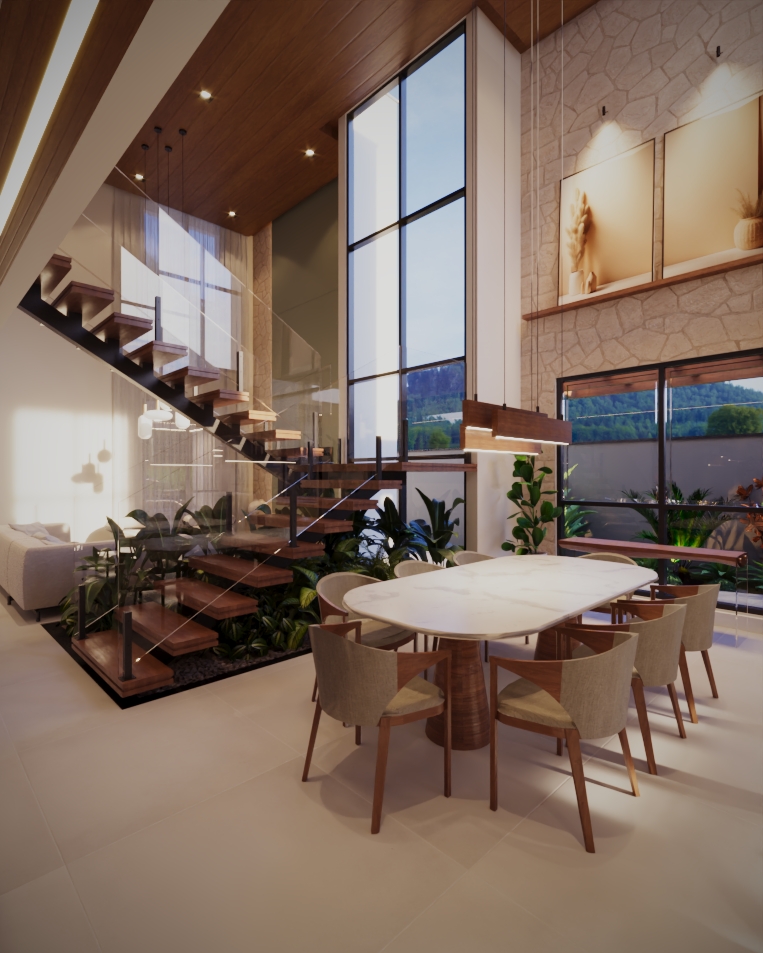 Definição de acabamentos, mobiliário, iluminação e decoração para os ambientes.